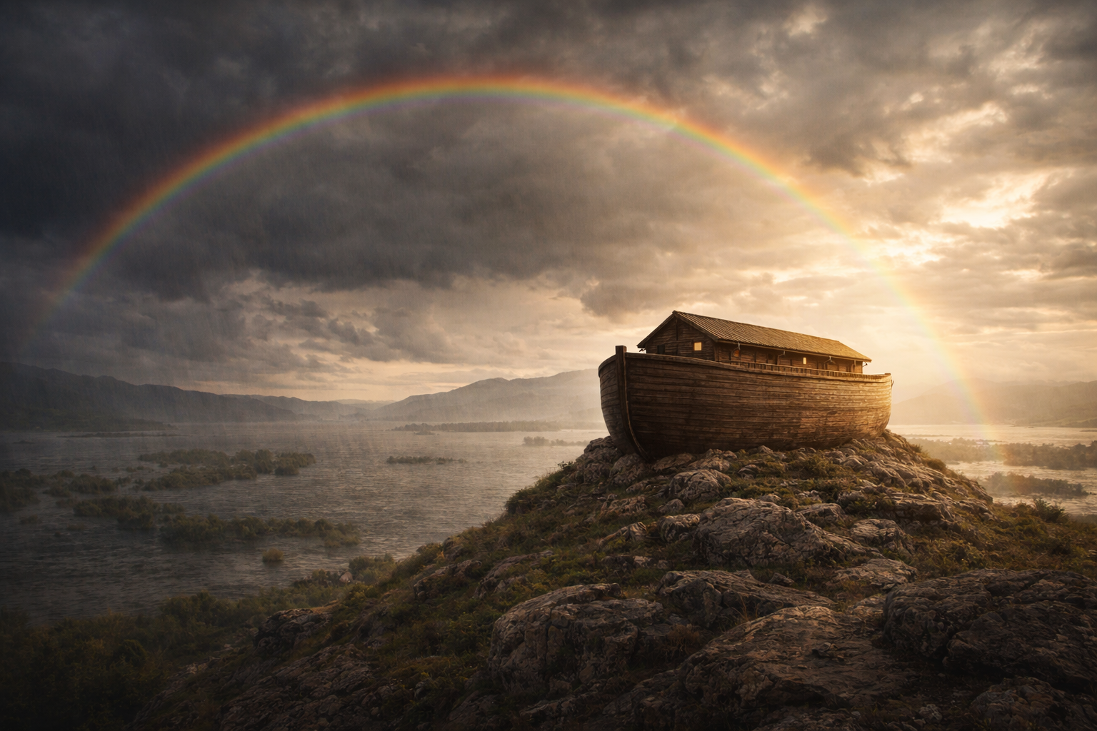 Noè diventa custode della nuova alleanza, e l’arcobaleno, segno di luce dopo la tempesta, ricorderà per sempre la fedeltà di Dio.